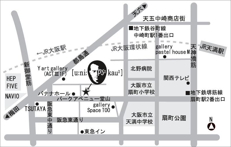 <会場> ウーニーポンポンカウカウ・アート・プロジェクト・スペース 〒530-0027 大阪市北区堂山町13-5 Tel/Fax 06-6313-2644 email:info@unipon2kau2.com website:http://unipon2kau2.com