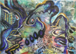 菩須彦スタイルは、暗闇の中、ヘッドライトの明かりだけで3畳サイズ以上のキャンバスに龍を中心とした神獣霊獣や悪魔をわずか30分で描く即興墨絵ライブペインティング。
